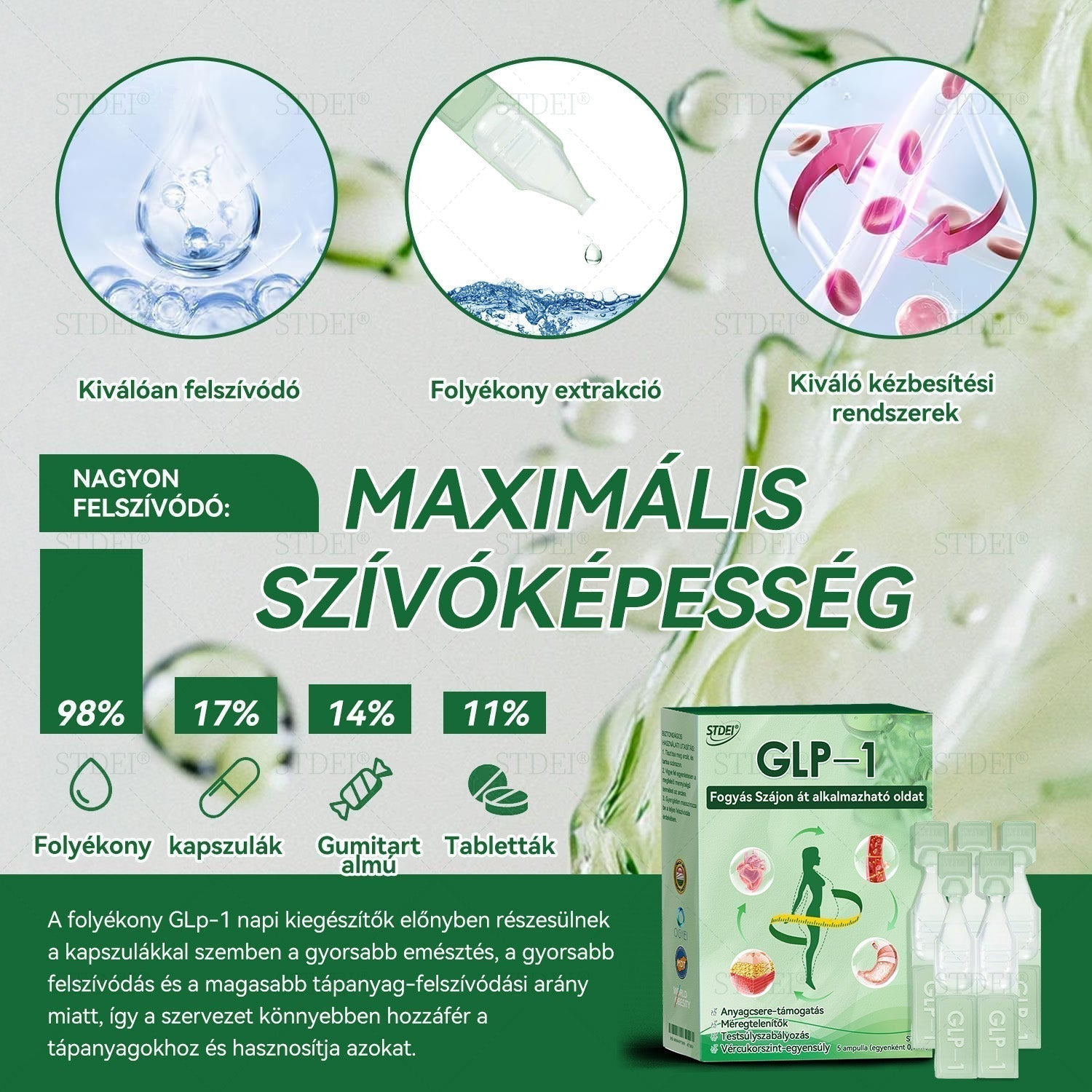A 𝐒𝐓𝐃𝐄𝐈® 𝐆𝐋𝐏-𝟏 𝐅𝐨𝐠𝐲á𝐬 𝐒𝐳á𝐣𝐨𝐧 á𝐭 𝐚𝐥𝐤𝐚𝐥𝐦𝐚𝐳𝐡𝐚𝐭ó 𝐨𝐥𝐝𝐚𝐭 szájon át szedhető oldatot több mint 20 év alatt fejlesztette ki a Semmelweis Egyetemi Kórház Anyagcsere-gyógyászati Tanszékének több mint 30 szakértőjéből álló csapat. A termék megglutidot és hatékony botanikai összetevőket ötvöz az anyagcsere fokozása, a zsírégetés felgyorsítása, valamint az emésztőrendszer és a nyirokrendszer egészségének támogatása érdekében. A szájon át szedhető oldat biztonságosságát és hatékonyságát az OGYE tanúsította, tudományosan megalapozott megoldást kínálva a fogyáshoz és az általános egészség javítására.