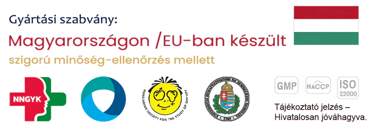 👩⚕️ A termék rendelkezik aMagyar Gyógyszerkönyv (Ph. Hg.) tanúsítványával, amely igazolja a biztonságot, hatékonyságot és a magas magyar minőségi előírásoknak való megfelelést.
